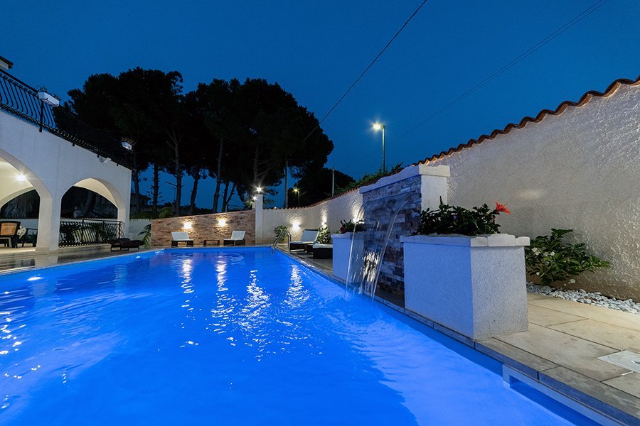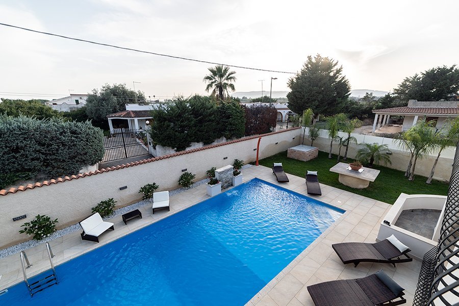 La piscina di pertinenza e i diversi angoli in cui immergersi in momenti di allegra condivisione o pacata quiete, aggiungono valore in termini di puro piacere e godimento del soggiorno.
